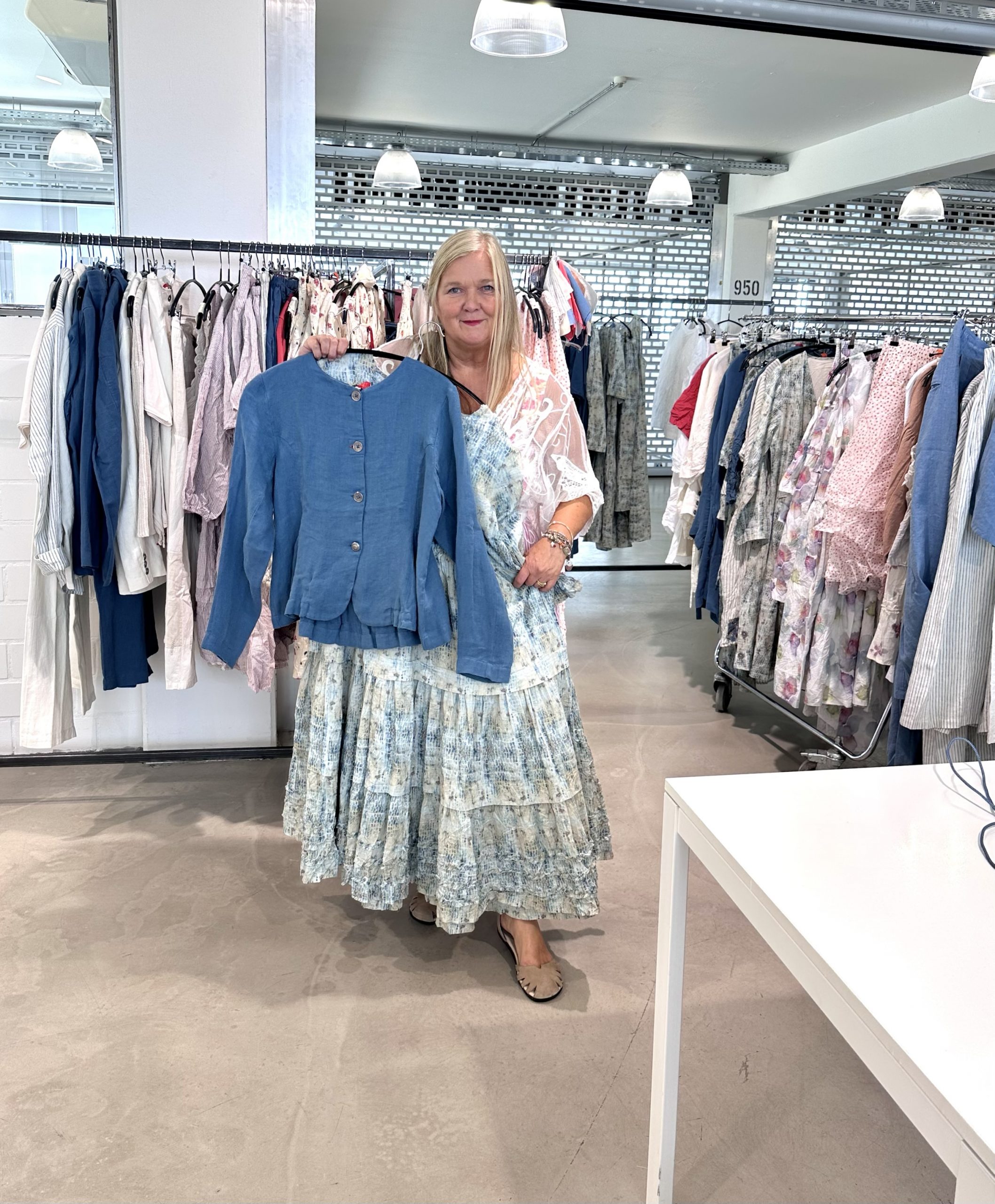 Blaues gemustertes Kleid Ewa i Walla