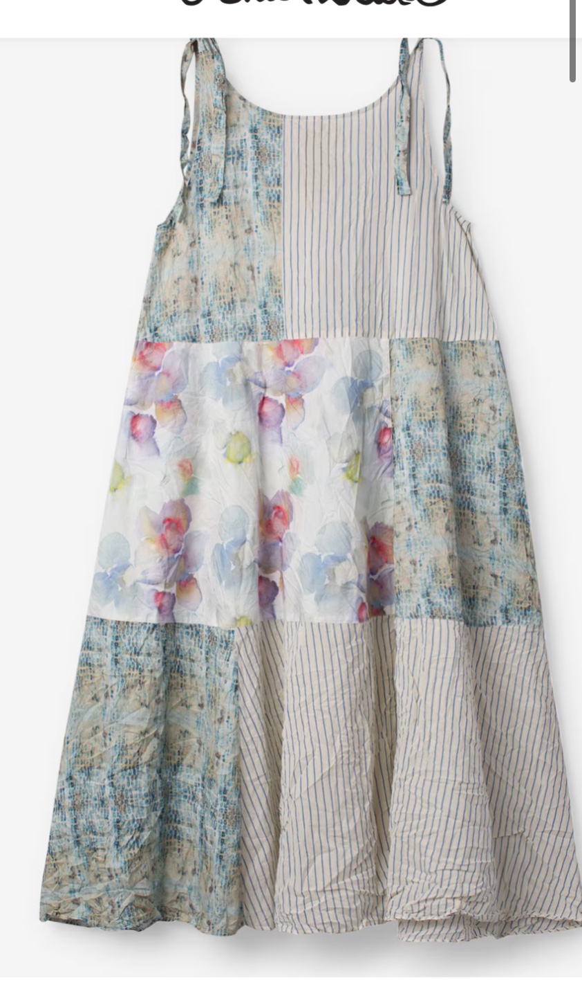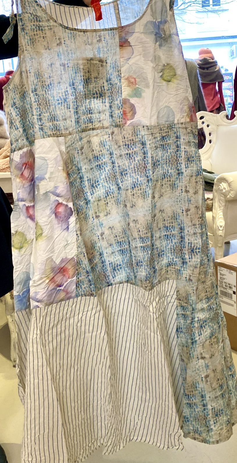 Blaues Blumen Patchwork Kleid Ewa i Walla