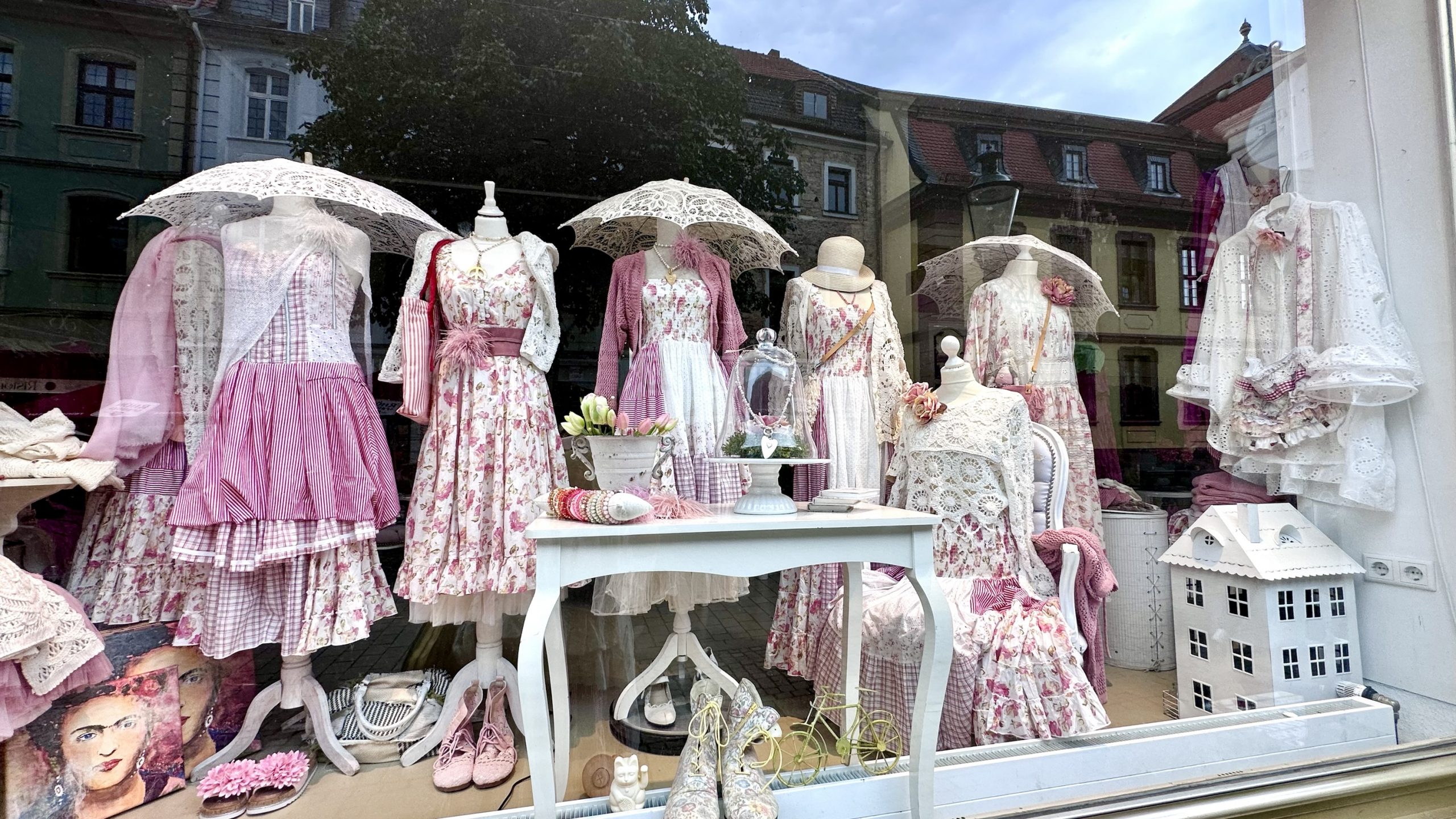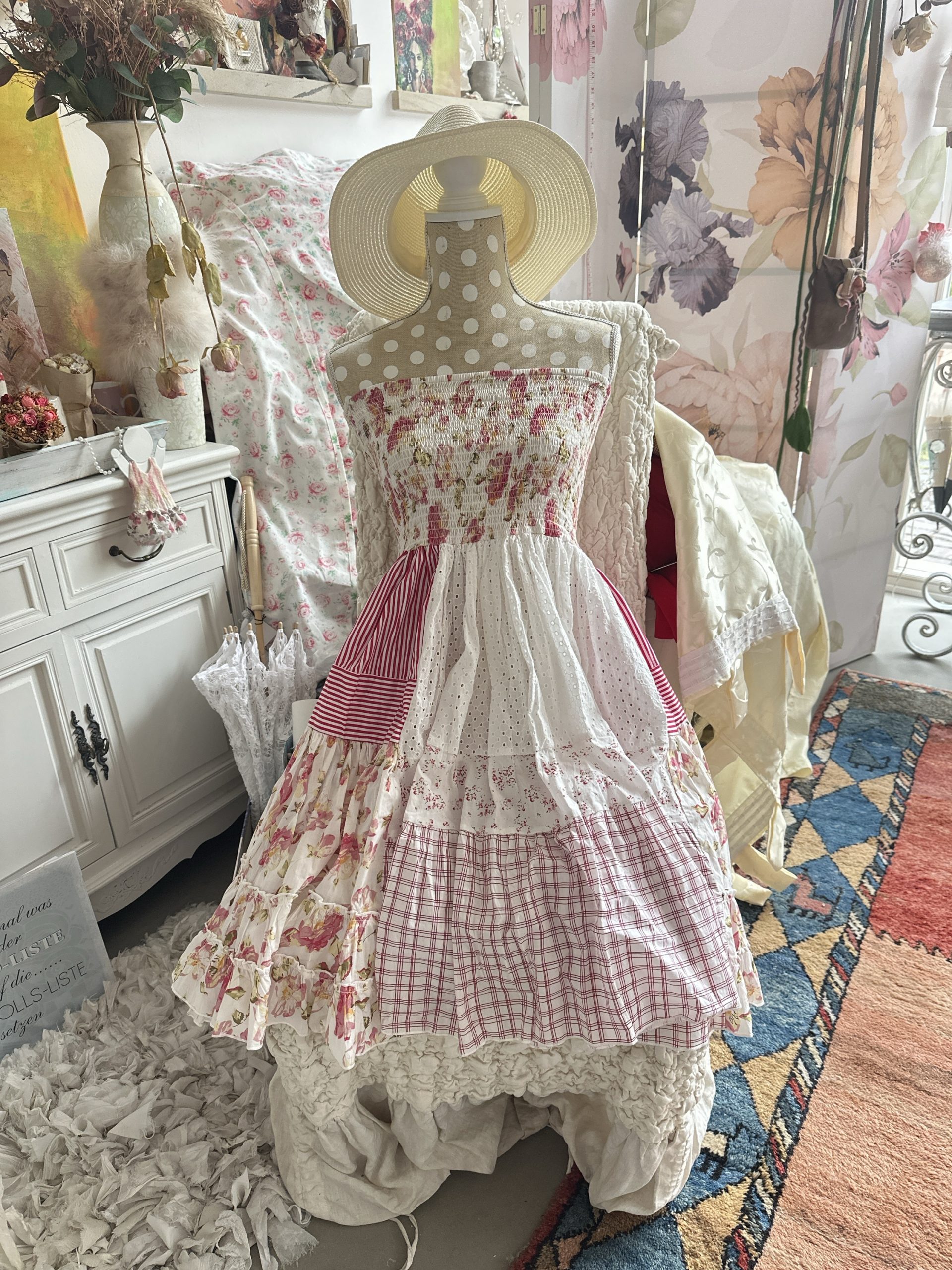 Marlies Rock mit Smok, in Natur mit Rosendruck zu haben oder ich färbe ihn auf Wunsch, auch als trägerloses Kleidchen zu tragen.